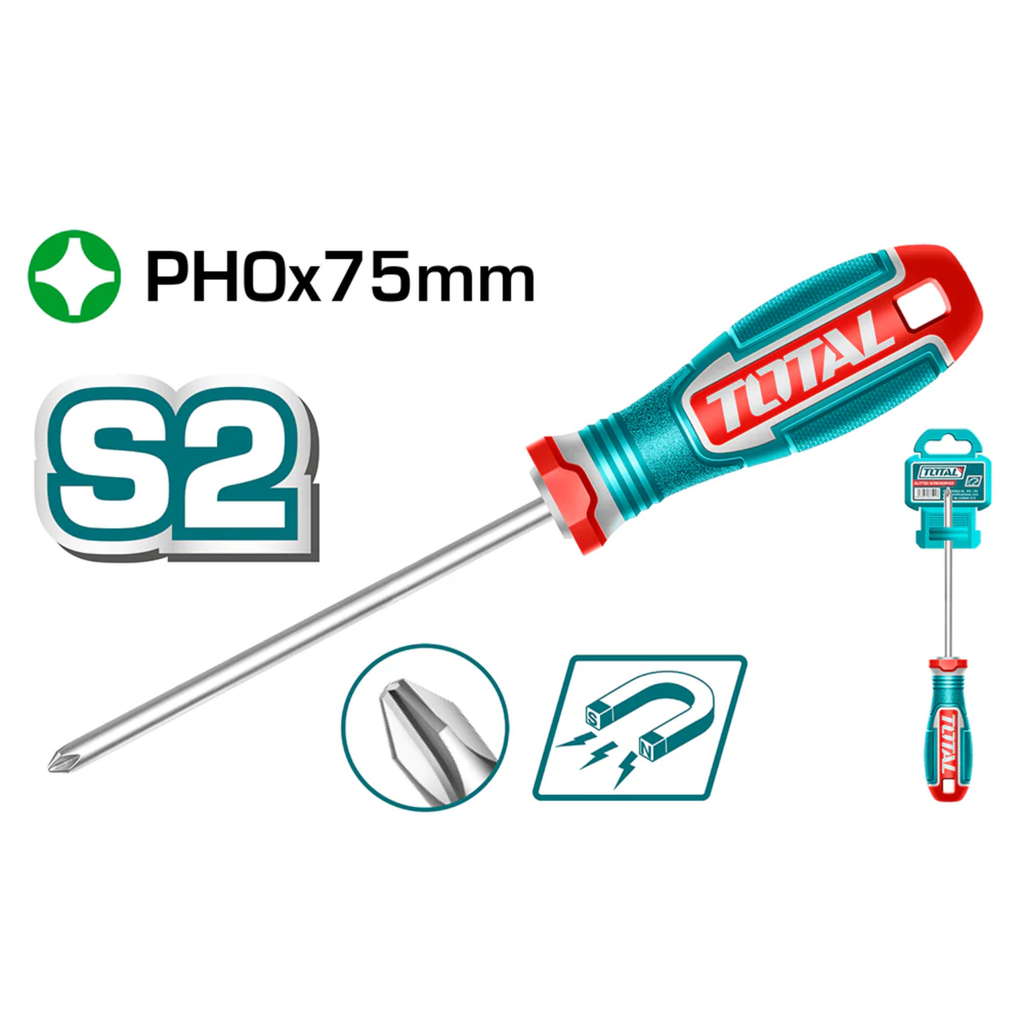 Materiale / Tecnologia: Acciaio S2, impugnatura ergonomica bimateriale, punta magnetica